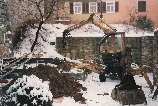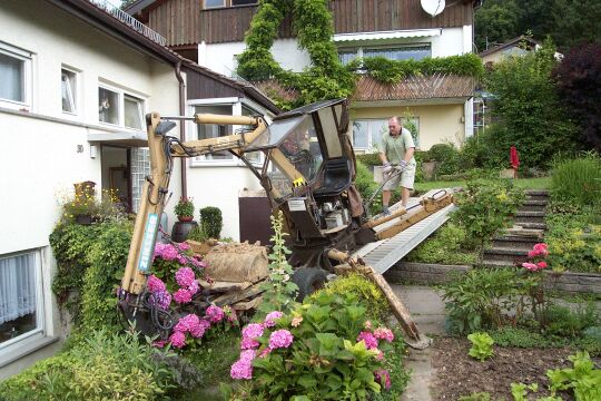 In angelegten Gärten bewegen sich unsere Bagger ohne wesentlichen Flurschaden.