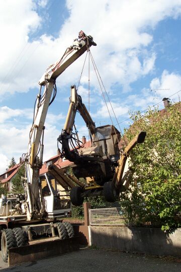 Stufen und Mauern überwinden wir mit Aluminiumschienen oder der Bagger wird mittels